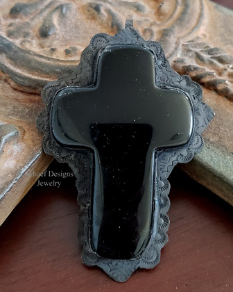 Large Black Onyx Cross set in Black Sterling Silver is a statement piece. This simple black cross is worn on black sterling & onyx station and bead necklace.