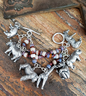 Vintage Susan Cummings SMALL African Animal & Trade Bead Charm Bracelet $699.00